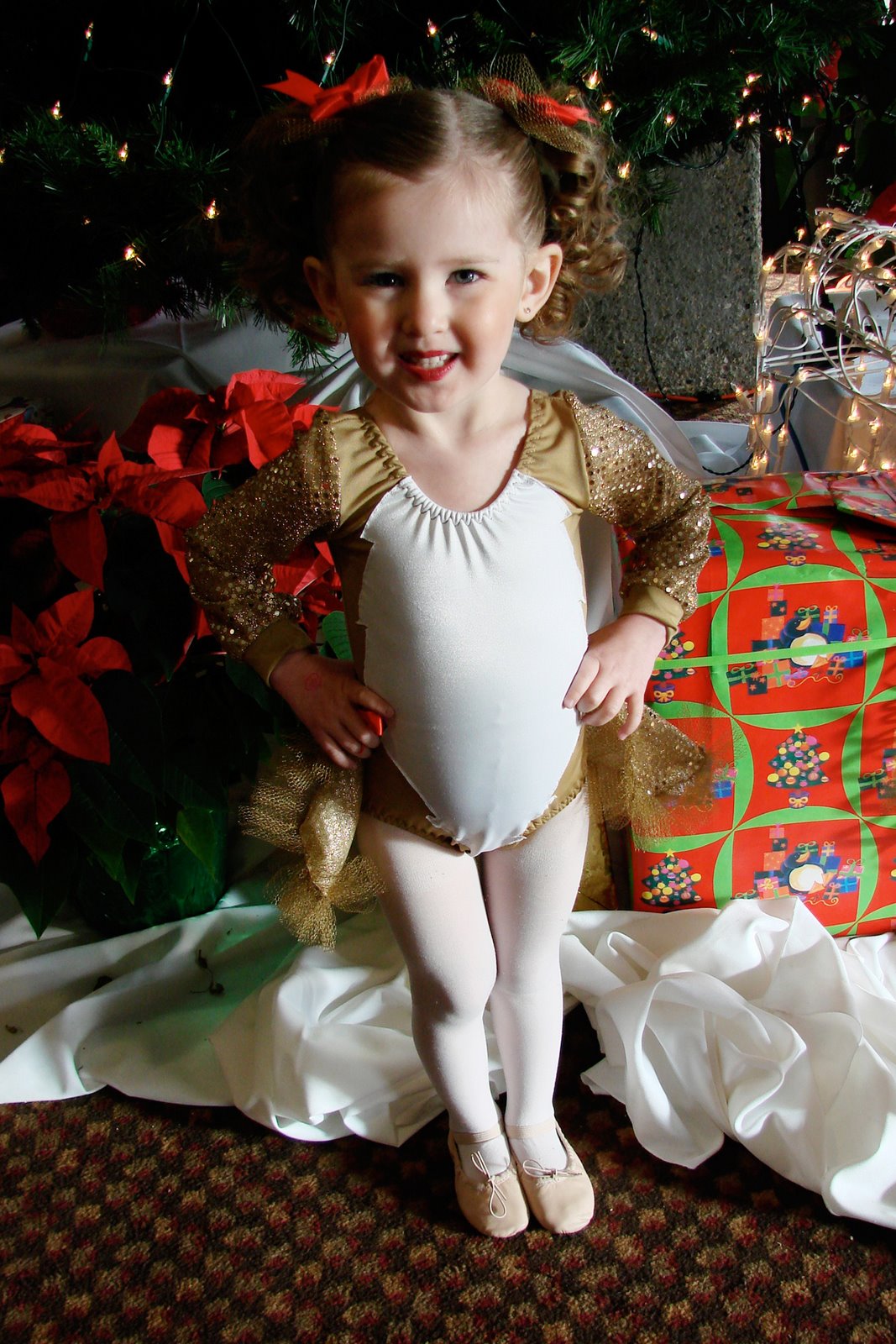*Payton did her Rudolph dance again on Saturday, and everything went well...she was dancin' up a storm on stage this time, and...mommy stayed with her till she went onstage, too.