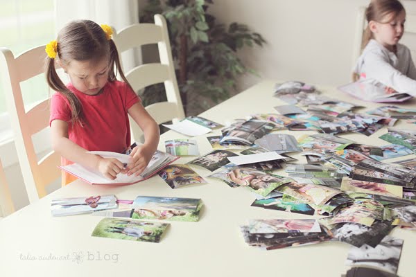 We started off with empty 4x6 photo albums (I got these ones at Superstore) and I just spread out a ton of pictures on the table and let the girls use whatever ones they wanted in their albums.